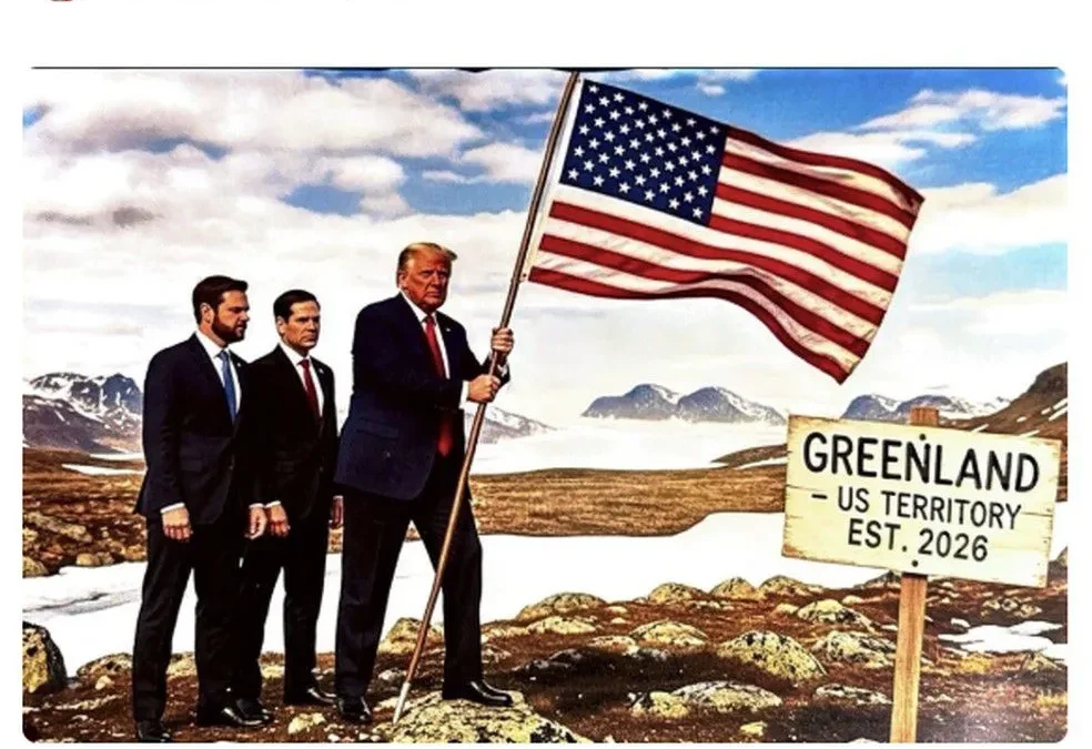 El mandatario difundió una fotografía en Truth Social donde aparece junto a su equipo frente a un cartel que declara a Groenlandia como territorio estadounidense desde este año. La imagen, cargada de simbolismo político, muestra al vicepresidente JD Vance y al secretario de Estado, Marco Rubio, validando una idea que Trump ya había mencionado en su primer mandato pero que nunca se concretó de forma oficial con Dinamarca, país que posee la soberanía de la isla.