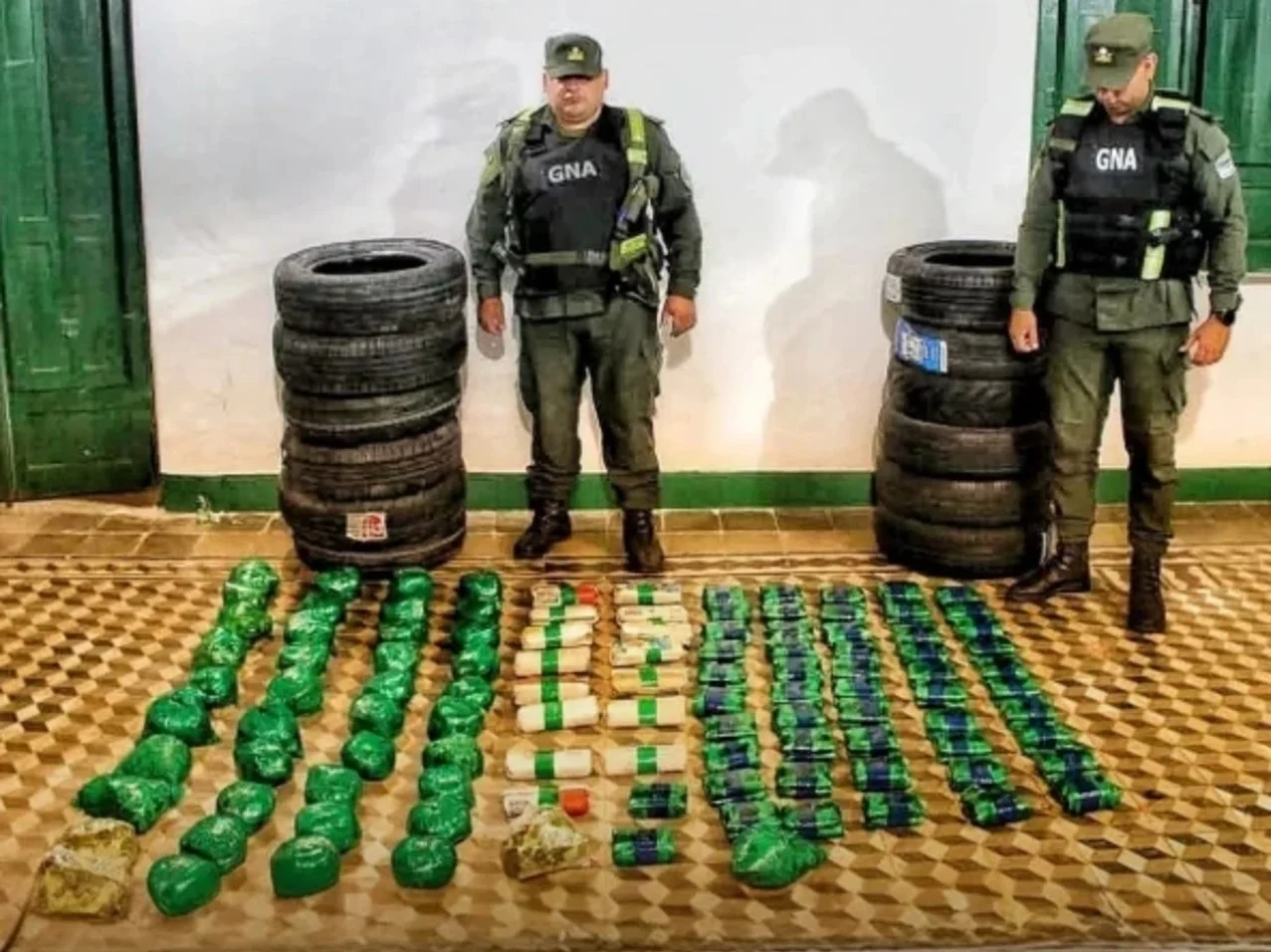 Al inspeccionar el vehículo, los efectivos descubrieron 27 kilos de hojas de coca en estado natural, además de calzado y otras mercaderías sin la documentación correspondiente. También encontraron 12 cubiertas de origen extranjero que no contaban con aval legal.