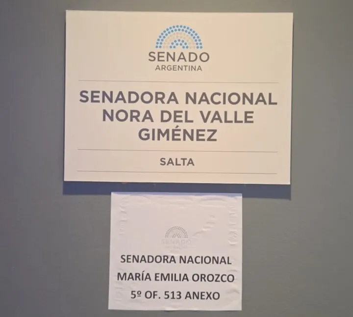 El recambio legislativo generó una disputa inesperada por los lugares de trabajo en el Palacio del Congreso. María Emilia Orozco, quien dejó su banca en Diputados para asumir como senadora, protagonizó un incidente al colocar señalética no oficial en la puerta de una oficina ubicada en el tercer piso. El objetivo fue marcar territorio en el despacho que utilizaba la ex senadora Nora del Valle Giménez antes de que las autoridades realizaran el reparto formal de las llaves.