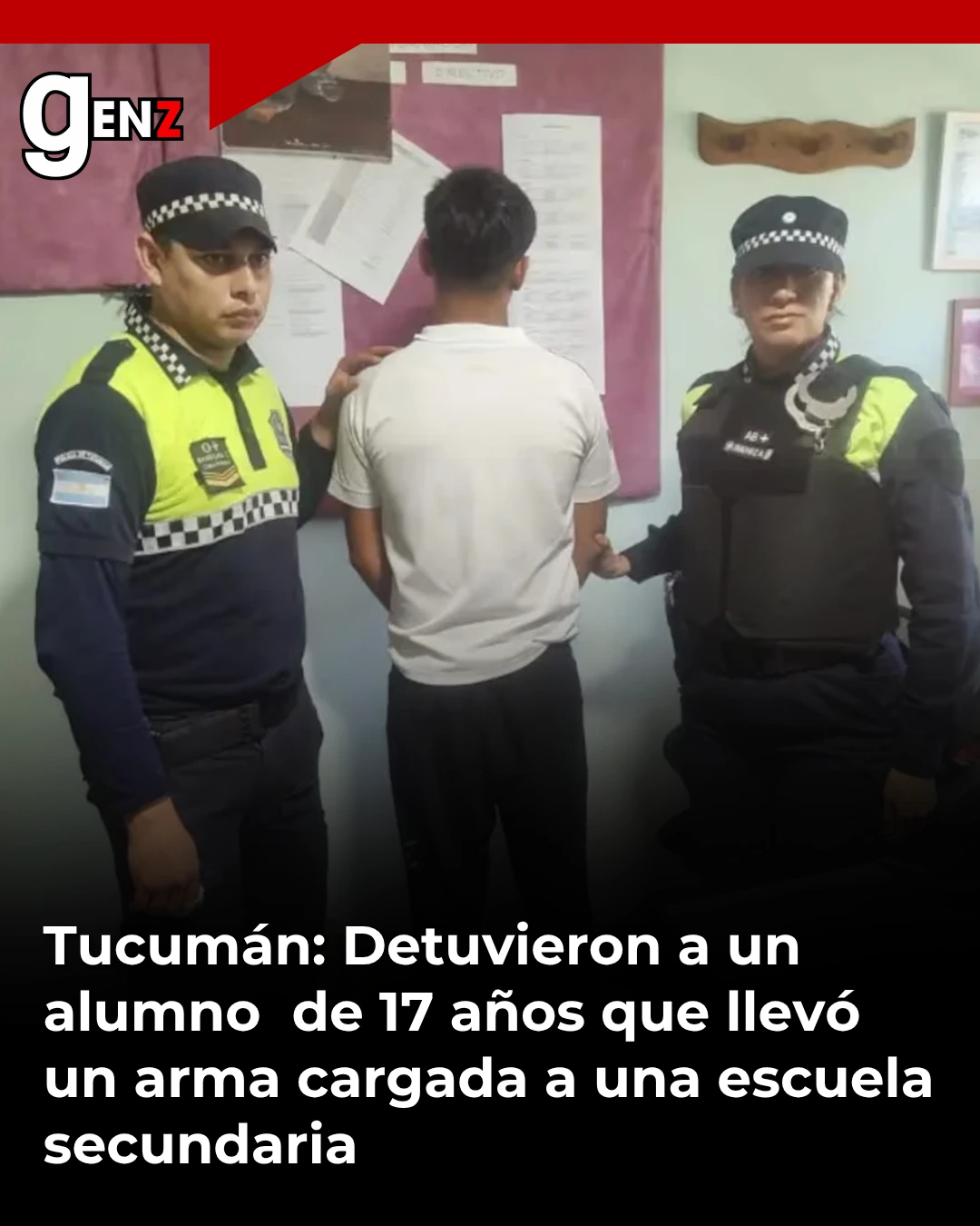 🚨 Un alumno de 17 años resultó detenido este martes en la Escuela El Salvador, ubicada en la zona sur de San Miguel de Tucumán, tras detectarse que portaba un arma de fuego cargada. El hecho se descubrió cuando el revólver cayó accidentalmente de entre las pertenencias del joven dentro del aula, lo que motivó el aviso inmediato a las autoridades escolares por parte de personal de limpieza y compañeros.